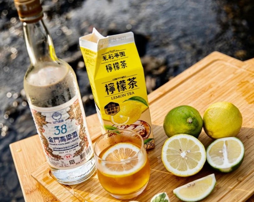 將高粱酒搭配檸檬茶,微澀的茶香與檸檬的香氣相互融合,不僅是消暑的佳選,更是高粱酒的絕佳搭檔。最後,再以幾片檸檬裝飾,飲品的風味更佳。